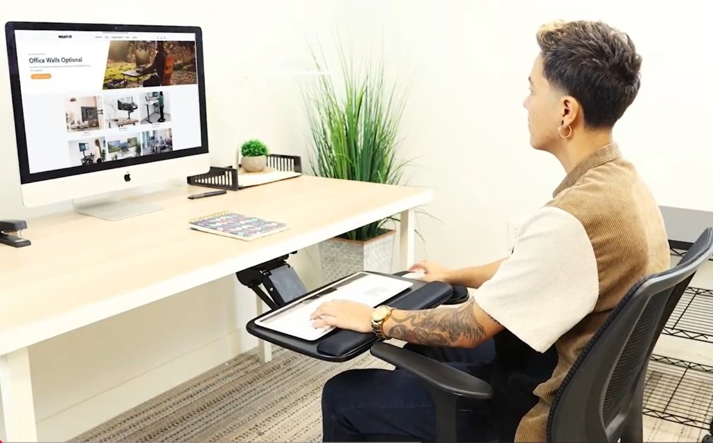 A keyboard tray is often an overlooked component of an ergonomic setup. Using a keyboard tray is necessary if you struggle to adjust your keyboard to the right height, as a tray means you don’t have to adjust the keyboard.