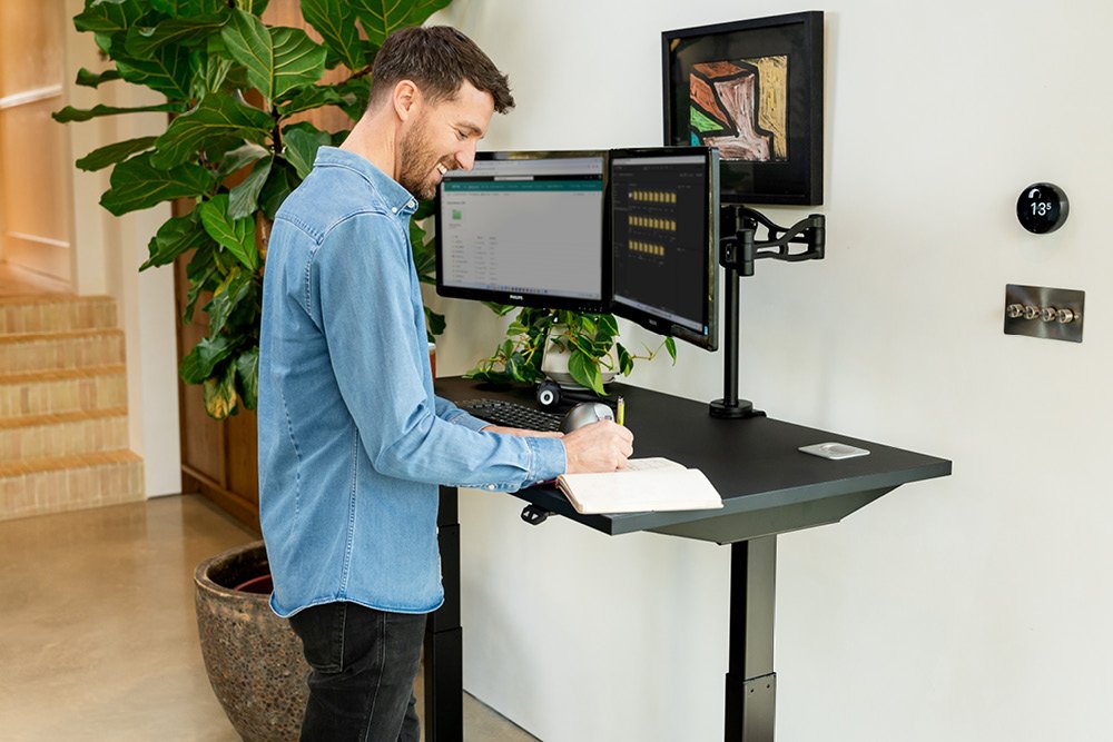 If possible, invest in a desk that you can adjust throughout the day. Altering your posture can help prevent repetitive motion-related injuries and fight fatigue. An adjustable desk allows you to set your entire workstation height to precisely your comfort level. Adjustable desks and sit-stand desks are becoming more popular in offices due to their flexibility and ability to cater to the user.