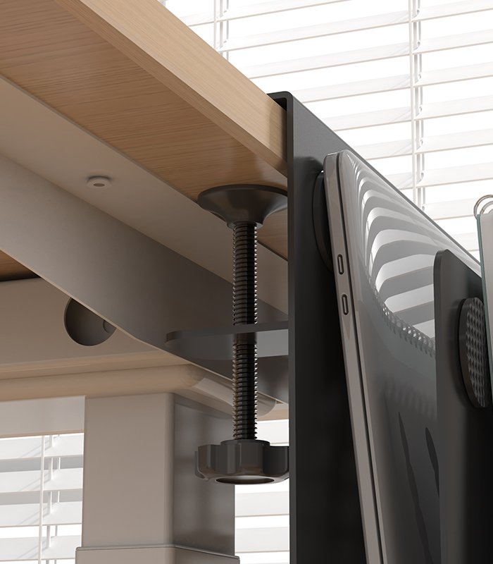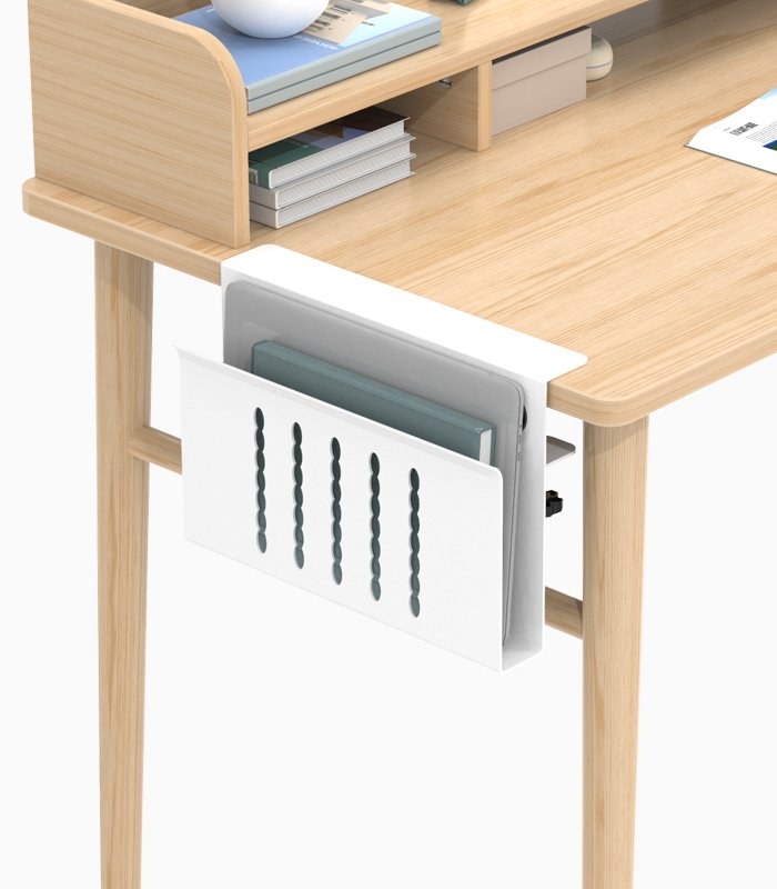 The laptop storage rack is clipped onto the tabletop without damaging the desktop, and the dual clip design is more secure. It can hold tablets and laptops, very practical.