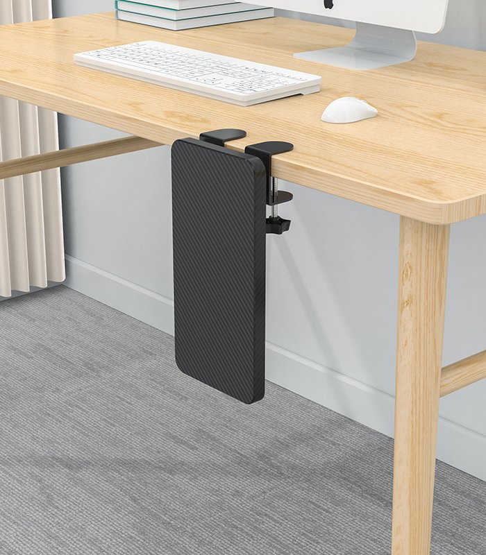 Arm support bracket, clamped on the desktop, provides support for the arm to prevent arm fatigue. It’s very practical.